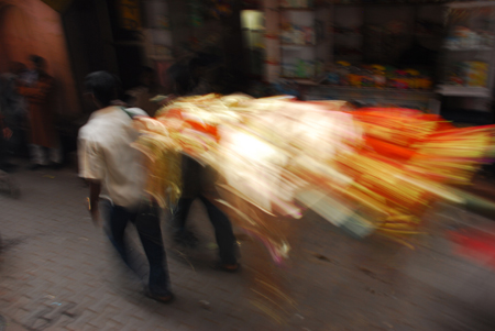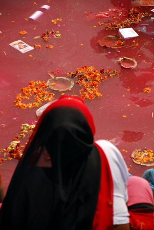 It's fun traveling with Salvatore, because he talks to everyone. As a result, he's been blessed, had his feet washed, been anointed, had mantras said and coconuts broken and has been drawn into ceremonies and offerings - all at a cost, of course. The most aggressive hustlers in India are the priests and holy men who want contributions - not for themselves, you understand, but for the gods. As for me, I refuse to take anything or give anything; all that I’ve seen serves only to confirm my belief that all religion is a collection of silly superstitions. A long time ago, as a young man, I vowed never to kneel to any god. And now, if I could, I'd vow never to take my shoes off to any saint, Hindu or Moslem (if they have saints). But that's where they have you; in India you are always being told to leave your shoes. My feet have been hurting the whole trip from the constant need to remove shoes to go where we want to photograph. Obviously, I need to learn more about the religions practiced here if I am going to fully appreciate what I am seeing; without that understanding, I am left to visceral reactions stemming from the religious prejudices I have brought with me. I’m not sure my photographs will be strong enough to open that door.