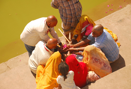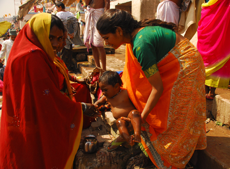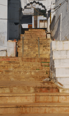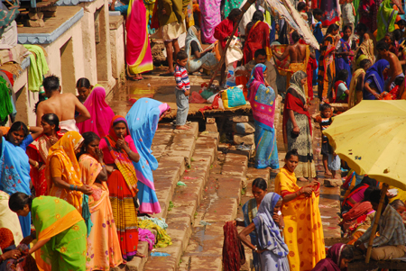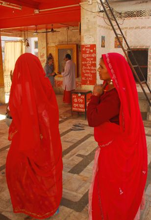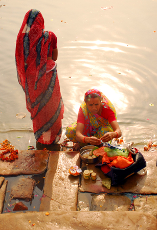 All along I had been commenting that I hadn't seen a breast in India - but after hints in Varanasi with the women bathers, in Pushkar I was finally rewarded. The women bathers here were far less self-conscious. I tried not to be too obvious in my appreciation. It's noteworthy that for all the sexuality depicted in the temples and sculptures, painting and bas reliefs, Indian women are quite proper and fastidious - not even a mother nursing - in public. Some years ago Richard Gere shocked the nation by publicly kissing an Indian actress; as a result, he was banned from the country.