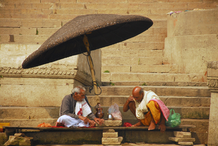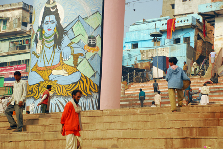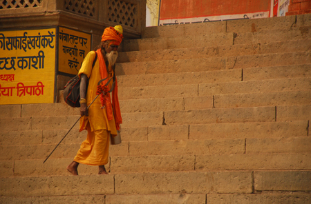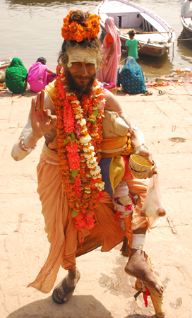 When I first thought of going to India, I thought a long period of time, a minimum of 5 weeks, would be necessary to absorb the spirit (spirituality) of the country, to let India sink in so to speak. But it hasn't worked out that way; we've been constantly on the move, covering a lot of ground and not staying too long in any one place, trying to see as much as we can. At this point, I'm not convinced that India is a spiritual country - religious for sure, more than any other country I've ever seen. But spiritual? Maybe in some remote areas or in the Ashrams. But even with the Ashram, you emerge into chaos. And the Sadus who wander around half naked and profess to be otherworldly still exist in the midst of the turmoil and disorder that is India. They don’t seem to me to have escaped this world. Varanasi brings these thoughts to a boil.
