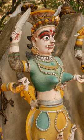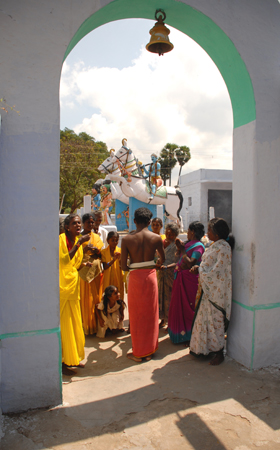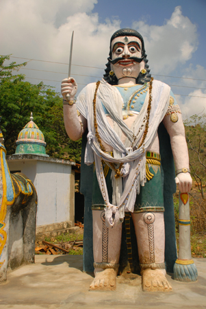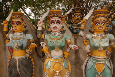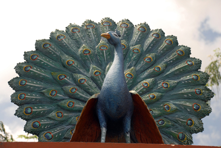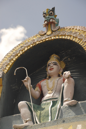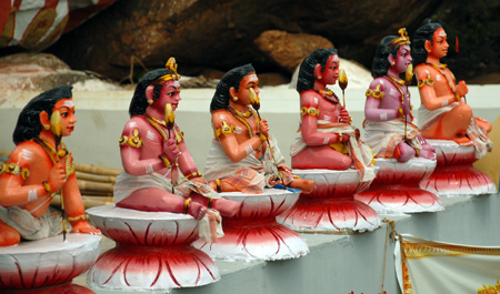We might have made it in one day had we pressed. Instead, we agreed to go to Cochin via Munnar where we would spend the night. The benefit of driving slowly was that we were able to stop and photograph when we wanted; And, we found another remarkable shrine along the road with statues of all sorts and priests in attendance. Several women were gathered outside to receive offerings of food. It seemed sort of a welfare line, but I couldn't be certain if these women were in need of food per se or of a spiritual offering. So often in India, poverty is masked by color; even street sweepers wear bright saris.