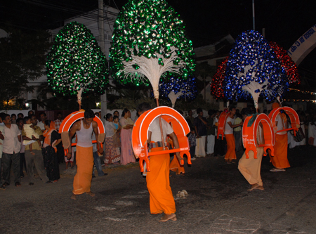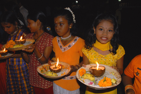 Then, we heard about a Hindu festival and procession with elephants, so after dinner we set out to find it, guided to it by the noise. It turned out to have dancers, musicians, elephants and long lines of young girls holding food offerings and candles. It seemed like some medieval lining up of all the virgins in the kingdom. Once again, we had free reign to photograph amidst the girls and the procession. People were very accommodating.