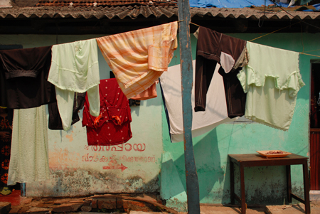 As soon as we began walking around Ft. Cochin, we could see it was a major tourist destination. We hadn’t been accustomed to this elsewhere; in other cities, we were used to seeing a handful of foreign tourists sprinkled in amongst the Indians, but this was very different. It’s easy to see why Ft. Cochin so popular with foreigners; it’s quiet, peaceful, not too hot and on the water. Pretty clean, too – except for the water. And there are plenty of good restaurants, all featuring ocean-caught seafood; one night we blew a hundred bucks on grilled fish, jumbo prawns etc. in a fancy restaurant set in an old colonial building overlooking the water. Dining with the ‘other half.’