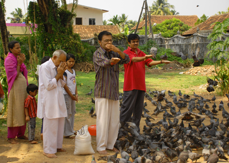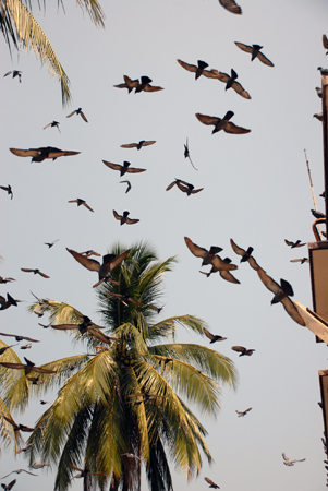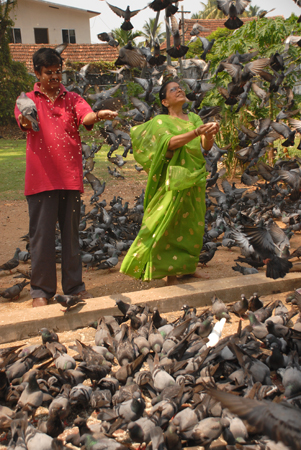 The next day we came upon a Jain temple at pigeon feeding time. Swarms of birds descended to eat grain out of the hands of the faithful. Afterward, a man told us he had been doing this every day for 18 years as an act of devotion. Jains do not believe in harming any living creature; here that has turned into a form of pigeon worship.