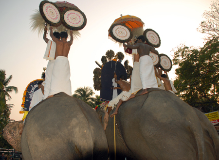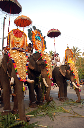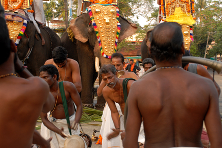 We keep running into more Hindu festivals - one last night started outside our hotel in daylight, so we spent some time photographing three elephants, their handlers and musicians who warmed up for well over an hour, very hypnotic.