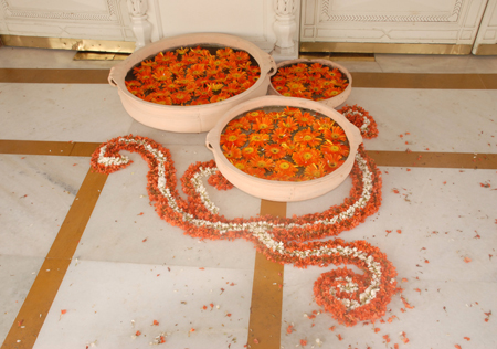 Today we stopped by the hotel where the wedding was held to see some of the trimmings - amazing and elaborate, with flower petals arranged in the lobby floor and all the hallways, whole pavilions built around the lush garden etc. Two Indias! Trying to change our train tickets yesterday was enlightening. We didn't trust the hotel people's English to understand what we wanted, so we went to the station ourselves and stood in a long hot line (the express!) for about 40 minutes. In modern India, all train and plane bookings can be done in a flash over the phone or internet. But if you don't have that access, then you live in a very different India. We got a small glimpse of it at the station.
