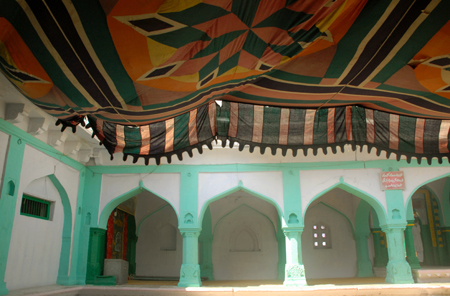 Afterward, we stopped at Khuldabad, where the body of Aurangzeb, the last great Mughal Emperor, is buried. (What a tyrant he was! And what a comedown, from Mughal emperor to this dusty backwater). Khuldabad is a Moslem enclave, and both mosques we saw there turned out to be fascinating, charming in their simplicity and quietude. (Much more interesting than the caves). Sal gave a young blind man rupees for two dollars that he couldn’t use; other beggars pestered us for money, and we gave donations liberally to all the shrines inside. The guides were good. And, we could photograph at will, which is what we appreciate most of all.