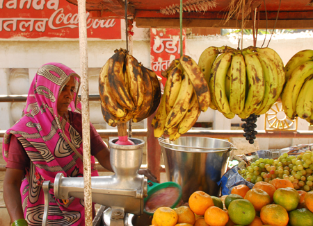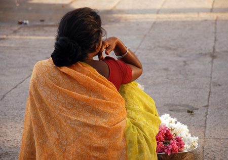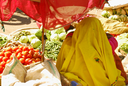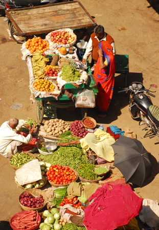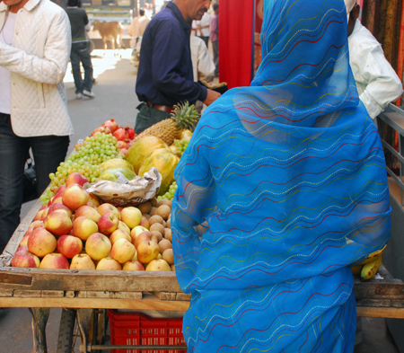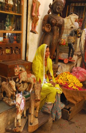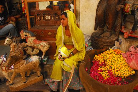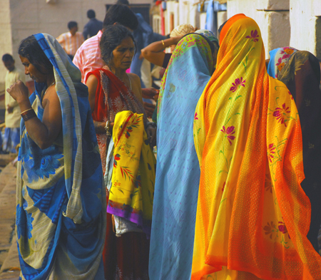 The color of India is in the women – in the saris. The men seem almost invisible by comparison, while the women, rich or poor, are like birds of paradise. They enliven the landscape, and I follow them around, drawn to the colors like bees to flowers. Pollination, anyone?