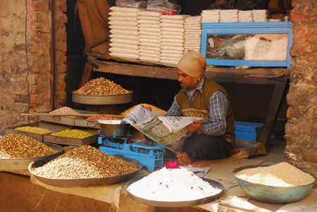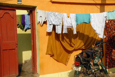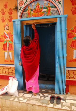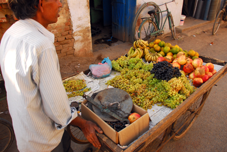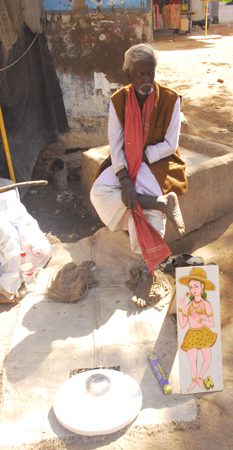 Sawar had been described by Marilyn and in town as the blue-eyed musician, and indeed he did have dark blue eyes. He explained that he was the 37th descendent of musicians in his family and showed me a picture of one of his forbears playing for the Maharaja. “We were treated as slaves then,” he declared, “And we still are.” He went on to explain something of the caste system. His family were musicians, lower caste. He still could not drink tea in the marketplace. (I had read that in some places, separate cups are kept for lower caste customers). I asked him how people could tell what caste a person was. They ask, he said, just as they ask you what country you’re from. And if you lie to them, you can be beaten, even murdered.