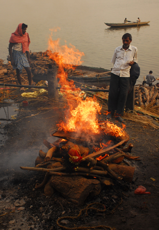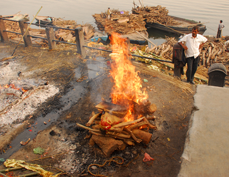 We did return to the pyres in order to photograph. It is forbidden to photograph the cremations - which in India means you have to pay someone. The prices were outrageous and very limiting - something like $100 per photo. We negotiated for over an hour with a young ‘guide’ who said he was an official representative of the hospice that accommodated people waiting to die and organized the cremations. For all I know, he was a self-appointed hustler, but there was no way to shake him. I saw similar negotiations going between other tourists and ‘guides’ but wasn’t able to compare prices.
