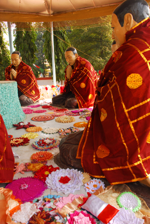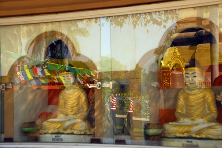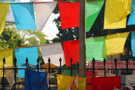 We spent three nights in Varanasi. We had to make plans to go west to Agra and beyond. Rather than mount the iron horse again (as you are supposed to do if thrown) we decided instead to fly to Delhi and hire a car from there to Agra. All was arranged by Dilip from Rajasthan with whom I finally made contact via my cell phone. The flight left in the afternoon which gave us time to photograph on the way to the airport. We stopped first at a spotless Buddhist shrine featuring colorful prayer flags and a grouping of larger than life statues. Next to a well manicured zoo where we saw giant pelican-like birds. But these were six or seven times the size of pelicans - amazing!). I bought a couple of hand made wooden toys after some frantic negotiating.