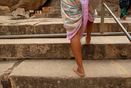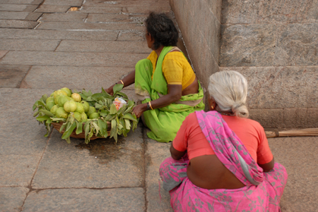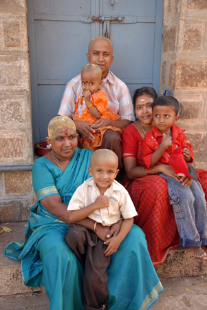 The morning after we arrived, we booked a car and driver to take us to a series of three temples which were quite remarkable. The first – Sravanabelagola - is a Jain temple on top of a mountain, and we had to climb 614 – count ‘em - stone steps to get to the top – barefoot except for socks (which we bought at the bottom). The place was full of pilgrims – including the two of us setting out on our own eccentric photographic pilgrimage. From the outset, we ran into a range of hawkers and hustlers but also people who just wanted to talk. “What country?” was the standard greeting. We talked to students, teachers and an engineer from San Jose who with his wife and two teenagers had recently returned to India to care for his elderly parents.