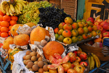 The authorities are making some gestures toward protecting their greatest monument, but it’s a loosing battle. No gas vehicles are allowed within a mile or so of the entrance of the Taj, so we went by horse cart once and electric rickshaw the second time. But the town of Agra is totally polluted; smokestacks dot the horizon all around the Taj. There are said to be some 1700 factories in Agra, many illegally established without permits or through bribes. The sacred Yamuna is a sewer, carrying waste of all sorts all the way from Delhi. When we asked people about the dirt, they said the Monsoon will wash it away. But the heavy rains come just once a year – and where does it all go? Security is also tight; everything is inspected, and I had to check my calculator before entering. They were also checking kid’s motorized toys. But none of these measures is going to help save the Taj Mahal; the foundations are in danger from the river, and pollution is eroding the fine marble. Cleaning solvents damage it even more.