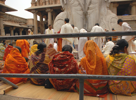 I passed the time outside in the shade and more or less a shit-free zone. A man approached to talk and it turned out he was from Vancouver, come home to claim his bride and take her back. He runs a construction company there. The bride turned out to be a lawyer, very pleasant. Talking about her anticipated adjustment to Vancouver, she pointed out that Indian law is virtually the same as British law, but Canadian law is very different. I think he wanted to impress her that he could meet and greet whites. I was dying to ask if this was an arranged marriage, how they met etc. but I held back. Also, why did they come here? Once again, it was a place of serious worship that eluded me.
