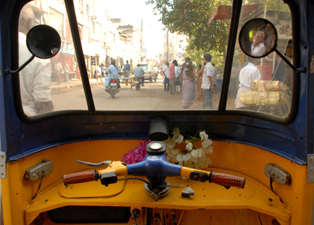 Our plan was to get out of big city Bangalore as soon as possible and rest up from our journey in small town Mysore. The taxi from Bangalore took just over 3 hours – and it turned out to be a flirtation with death and destruction. We had a cowboy driver who kept the radio blaring and his foot on the gas, weaving in and out, passing into oncoming traffic, cutting all distances as close as possible. We were on the edge of our seats the entire trip, cringing. Traffic was bad enough; this driver increased the risk of serious accident exponentially. We felt lucky to arrive safely.