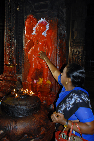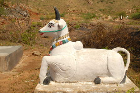 Afterward, we walked down past a large Nandi (Shiva’s bull). On the way down we met some young British kids who told us about their train ride the day before, the reverse of the one we were to take tomorrow to Madurai. We encountered our first monkeys near a shrine. We kept our respective distance. Our rickshaw driver met us at the bottom to take us back to the hotel. All in all, a good day; more photos. I’m comfortable now using the digital camera. I edit as I go along (although it’s hard to read the monitor in bright sunlight). Then I edit every night and download the cards onto my Epson storage viewer.