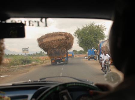 Some of the truck loads are huge and occupy most of the road, covering both lanes. I kept trying to photograph the loads and the congestion from the car.