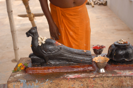 Today at our hotel a group of Brits arrived, all on old style Enfield motor bikes, big, black beasts with no windscreens or frills, nandis on wheels. They are doing a week tour of Southern India by bike. Given the traffic, we thought they had to be crazy, but all said they had no problems and all was fine. Then, on the street I ran into a young Canadian girl who told me she and her boyfriend had been traveling throughout Southern India on their Enfield – all alone. They had come all the way from Calcutta. Now, that’s really nuts! She said she was exhausted because couldn’t relax for a second, even though she wasn’t doing any of the driving.