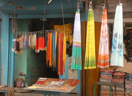 Pushkar is a sort of hippie town organized for tourists, so there are all sorts of shops lining most of the streets. We began shopping for cloth but found the shop keepers would not bargain at all; in the end, it was us who came up in order to get what we wanted.