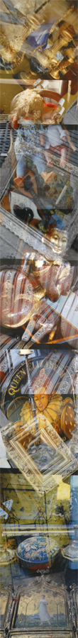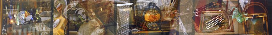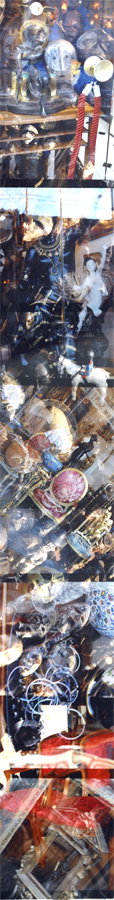 One thing that makes Pollock’s drip paintings a success in my opinion is his limited palette which serves to bind the wild and random elements together. I chose to integrate my photographs by restricting them to a single time and place and a coherent subject. The photographs in this series were all taken at the Cligancourt flea market in Paris, a vast jumble of antiques and relics of every sort and description. I call it the world’s attic. The intricacy of the imagery is faithful to the spirit of the flea market.